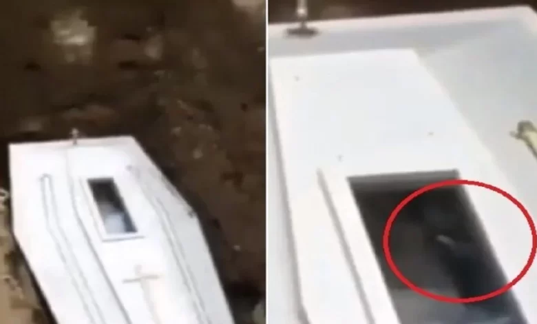 Cadáver acena para amigos e familiares pelo vidro do caixão no momento do enterro; Assista ao vídeo